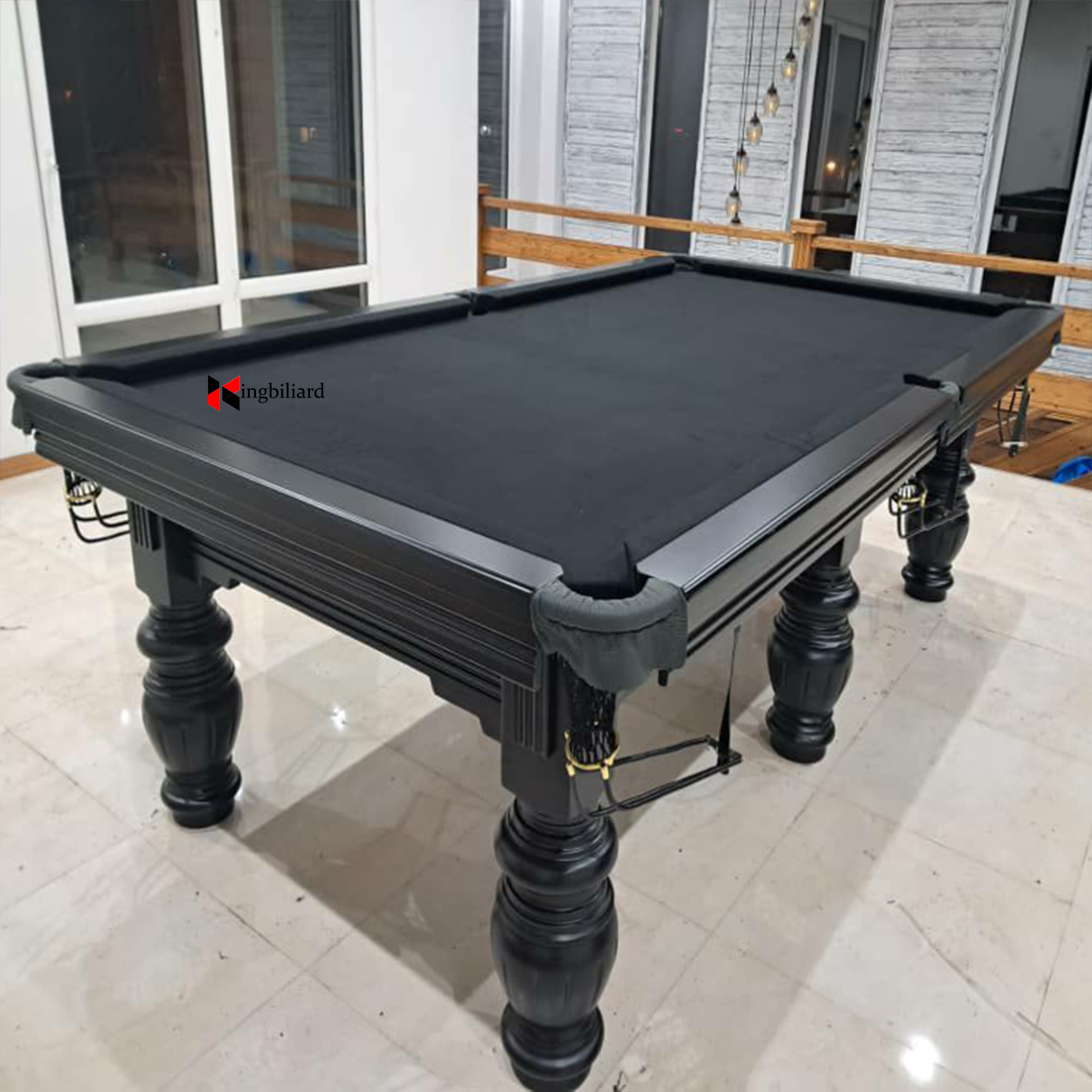 سنگ اسلیت سهتکه: در این میز از سنگ سه تکه با ضخامت ۳ سانتیمتر استفاده شده است. این سنگها سطح صافی برای حرکتهای توپ ایجاد میکند.